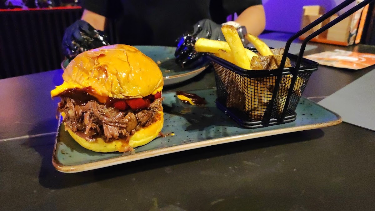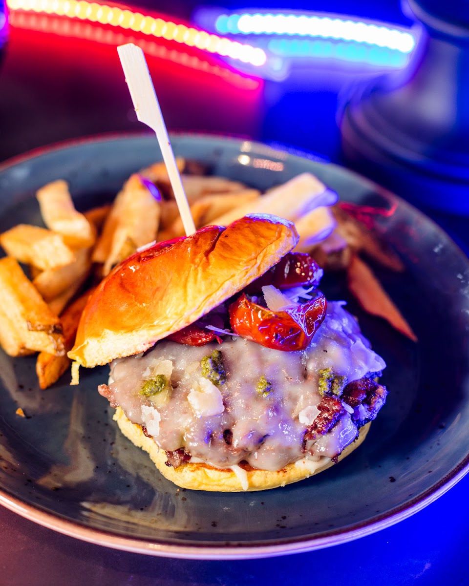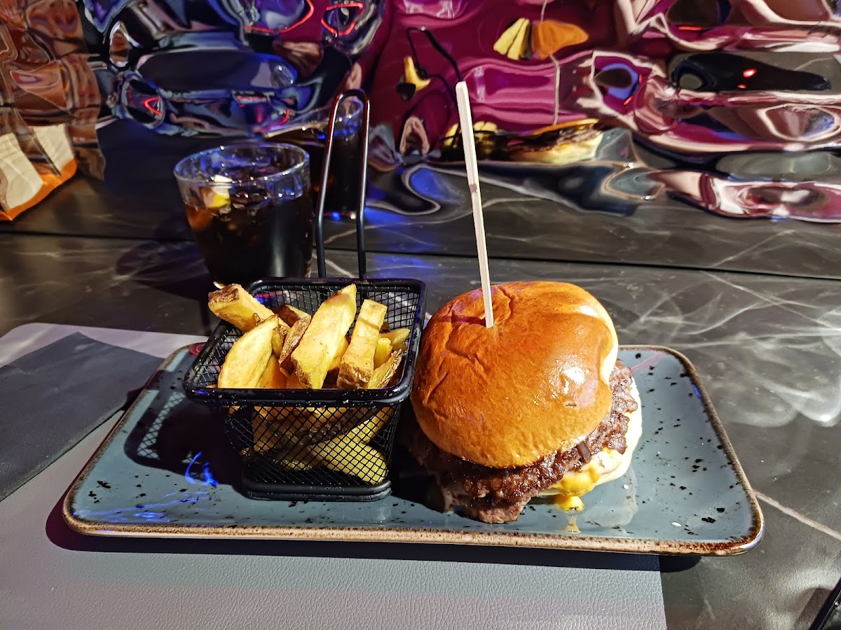 Cenamos hamburguesas y nos encantó me pedí la básica y estaba deli viene con patatas y el bacon es crocante